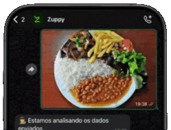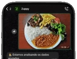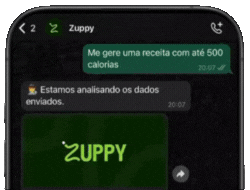Tudo acontece direto no seu WhatsApp: é só mandar sua refeição e deixar a inteligência da Zuppy cuidar do resto.